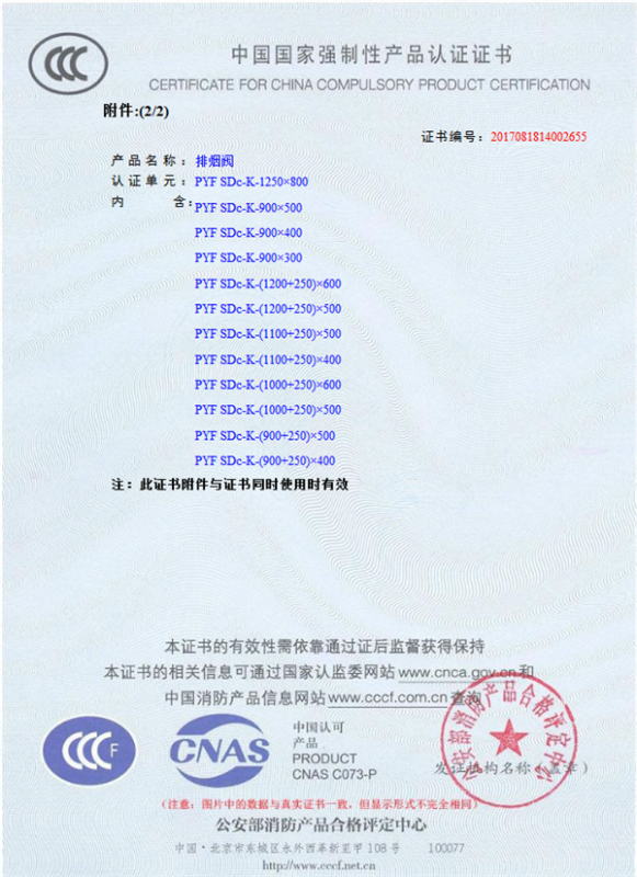 產(chǎn)品全通過國家消防檢測(cè)中心檢測(cè),獲得CCC證書